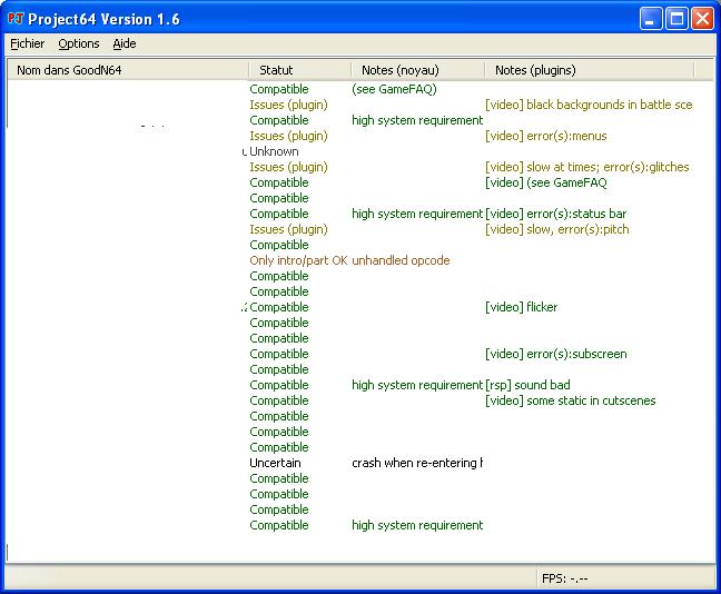 L'émulateur affiche la liste des jeux N64 contenus dans le répertoire sélectionné