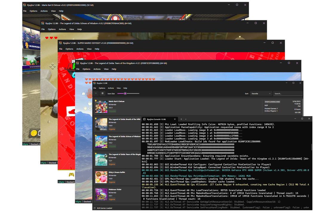 | 10/12/2025 | Ryujinx | 1.1.800 | Switch | 20 | Émulateur Switch très complet et performant. Compatible multi-plateforme (Windows, macOS, Linux). Open source. Idéal pour les conteneurs créateurs de contenu et pour tester les jeux Switch sur PC. |  |